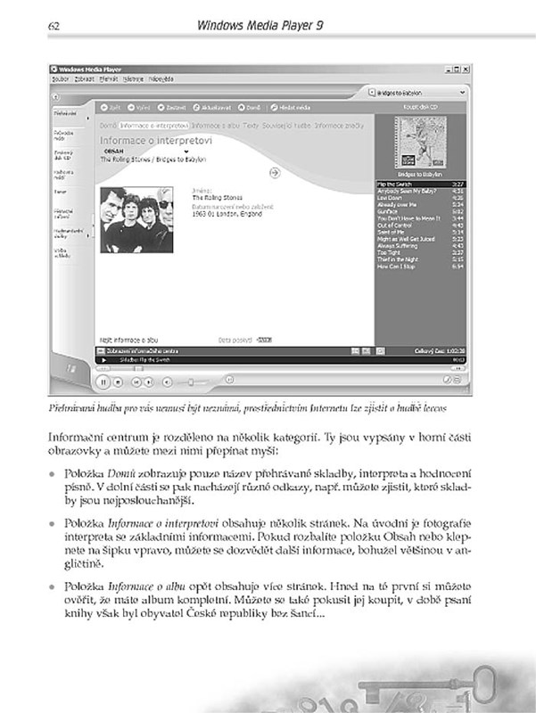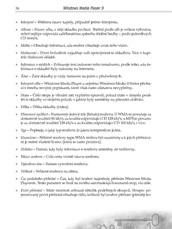 V této knize si ukážeme, co všechno Windows Media Player ve verzi 9 umí. Použijeme jej k přehrávání hudby i videa, ukážeme si, jak udržovat svoji knihovnu médií a jak z ní přehrávat jen to, co chceme. Naučíme se kopírovat běžná hudební cédéčka do počítače, a to nejen do formátu WMA, ale i do formátu MP3 (i toto Windows Media Player umí!).