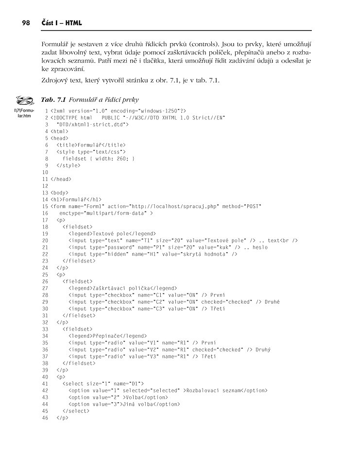 · textová pole, tlačítka, rozevírací seznamy, přepínače a další ovládací prvky