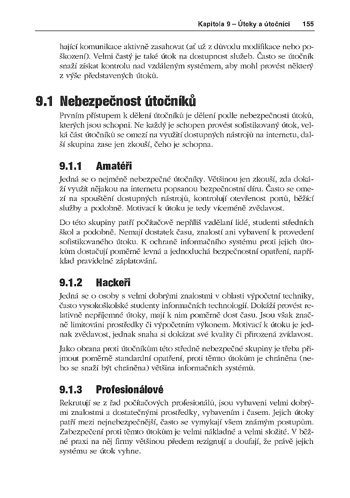 Tato kniha slouží k získání vědomostí a praktických znalostí ze všech oblastí počítačové bezpečnosti. Je samozřejmé, že při svém rozsahu nemůže zabíhat do přílišných technických podrobností. Není tedy určena například pro profesionální kryptology nebo experty na zabezpečení konkrétních produktů. Pokouší se ale přinést souhrn toho nejdůležitějšího, spolu se seznamem literatury a internetových odkazů, kde se dají podrobnosti najít. Jejím úkolem je být vám pomocníkem při předcházení bezpečnostních incidentů, ať již se jedná například o útok hackera, virové hrozby nebo třeba zneužití dat jedním z vašich zaměstnanců. Dozvíte se v ní principy a koncepty aplikovatelné na vaše konkrétní produkty.