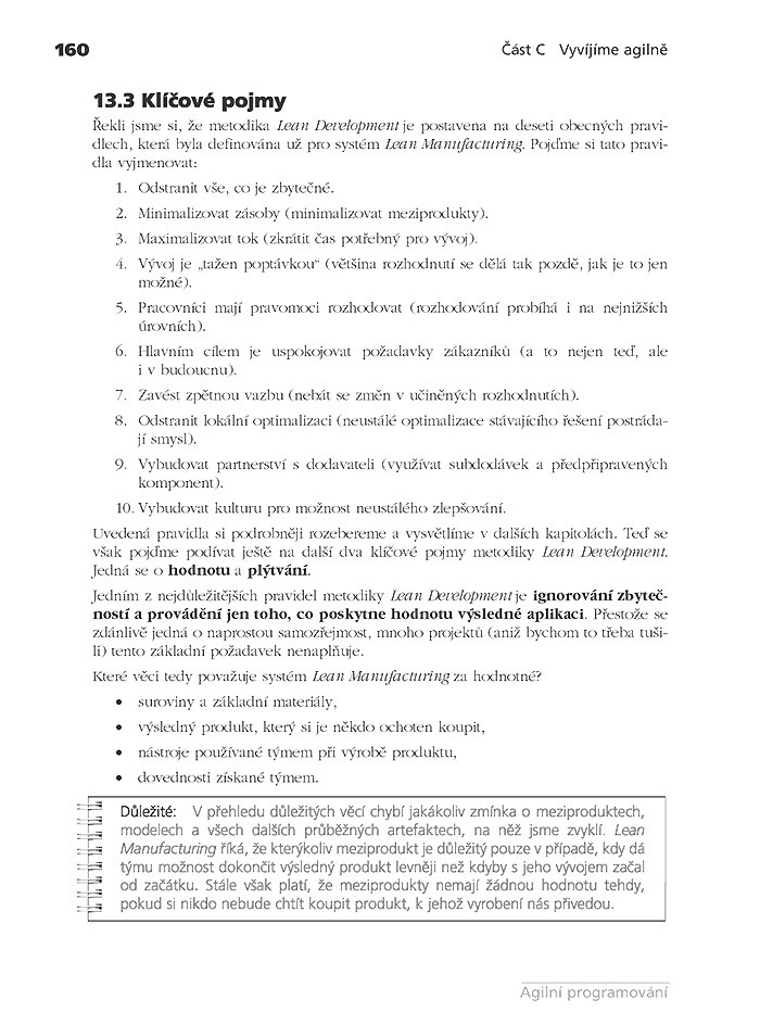 Autor se k celé problematice staví bez jakýchkoli předsudků a nestraní žádné z představovaných metodik. Informace a otázky uvedené v knize by vás však měly přinutit zamyslet se nad efektivitou vývojového procesu ve vašem vývojovém týmu a motivovat vývojáře, jejich manažery a šéfy projektů hledat zdroje zdržení, neekonomičnosti a neefektivity ve vývojových procesech, jichž se sami účastní.