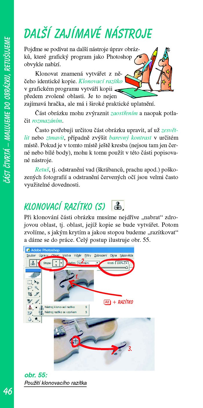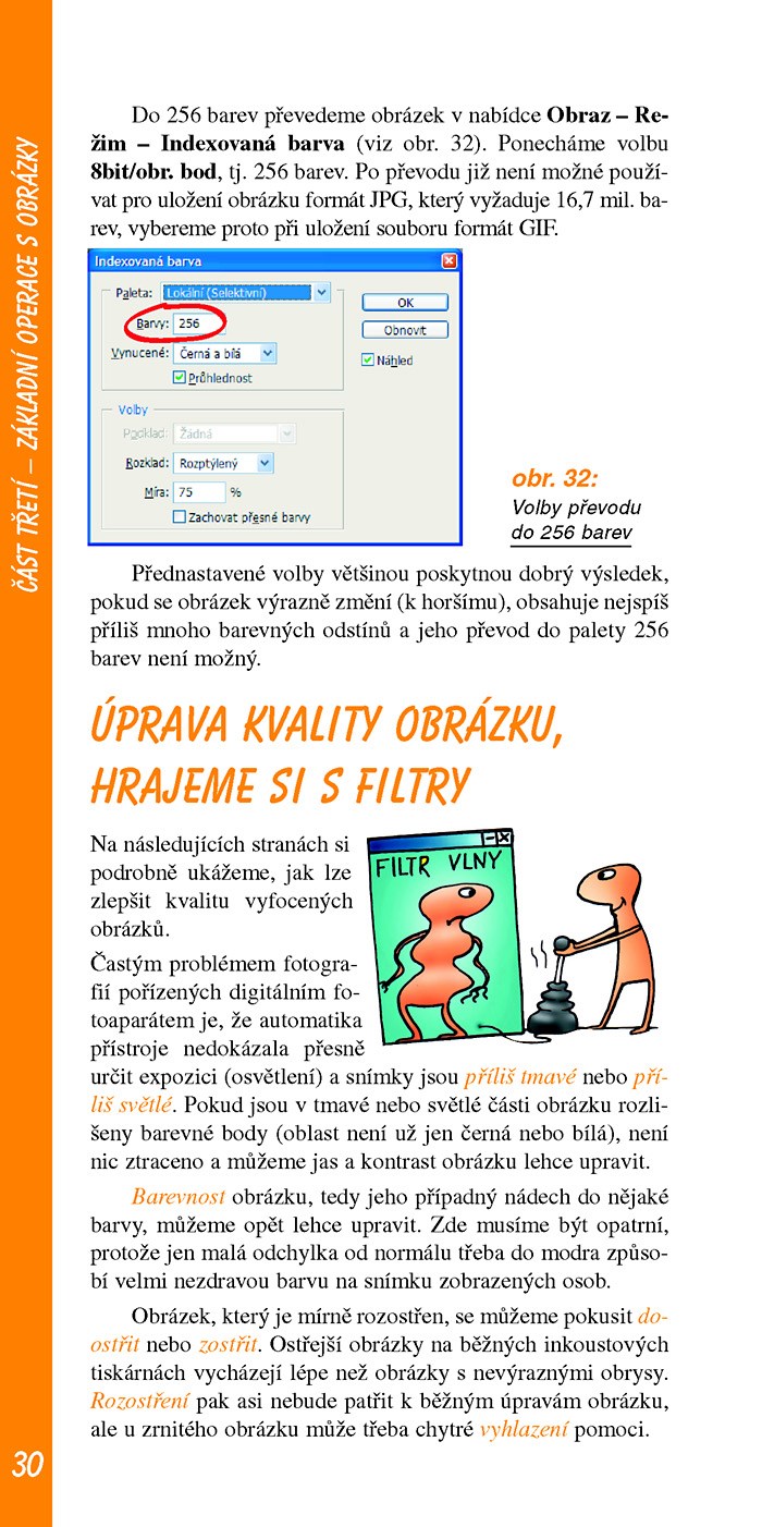 Poznáte základy práce v grafickém programu, dostanete do počítače digitální i papírové fotografie z fotoaparátu či skeneru a uvidíte, kde a jak ještě lze získat obrázky. Zvládnete jejich úpravu, vylepšení ostrosti a barev, retušování vad a červených očí, kreslení i psaní do obrázku, použití filtrů pro různé efekty, jednoduché fotomontáže i kvalitní tisk. Buďte svým vlastním grafikem či fotoamatérem!