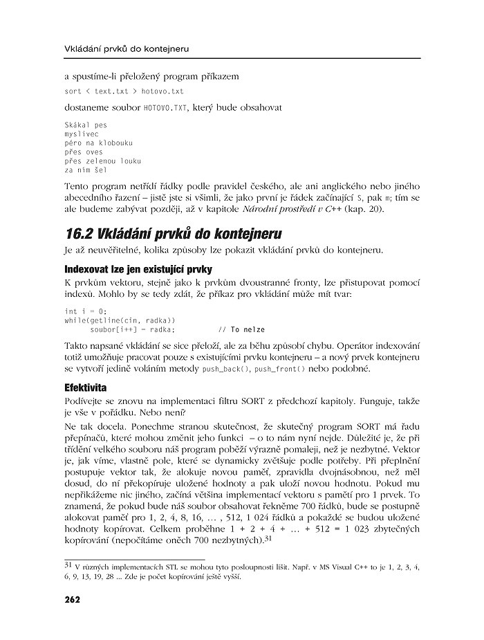 Kniha se zabývá následující problematikou z pohledu C++: