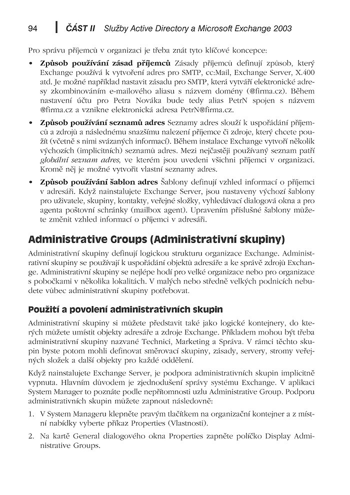– Instalace a použití konektorů pro směrovací skupiny, SMTP a X400