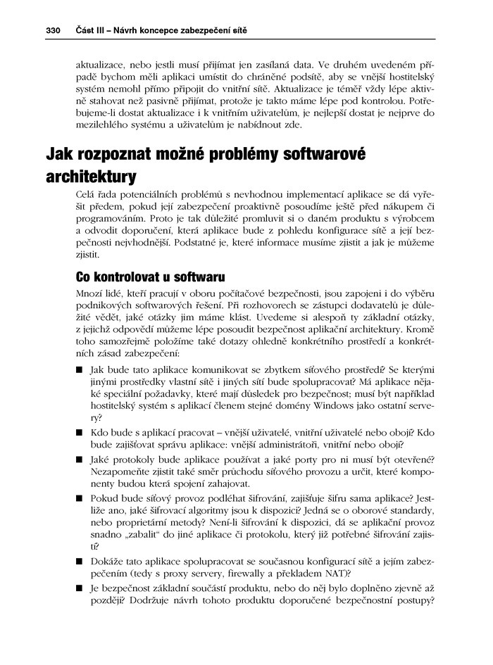 Každý praktický návrh zabezpečení, popsaný v knize, odráží věcné potřeby a obchodní zájmy, kvůli nimž například musíme na firewallu nechat otevřené určité porty, na serveru nechat v provozu určité služby nebo musíme nechat systém bez důležité bezpečnostní záplaty, protože s ní by se zhroutila nějaká kriticky důležitá aplikace.