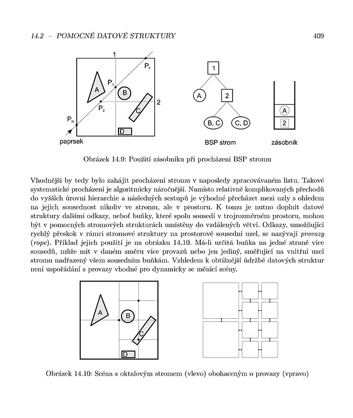 Kniha je rozdělena do pěti částí. První je věnována rovinné (2D) grafice - zabývá se popisem objektů definovaných v rovině, jejich rasterizací a úpravami vzniklého obrazu. Další tři části jsou zaměřeny na prostorovou (3D) grafiku. Nejprve jsou uvedeny metody popisu prostorových objektů, poté způsoby jejich zobrazování a nakonec techniky používané při animacích a v aplikacích v reálném čase. Poslední část knihy potěší programátory - obsahuje výběr matematických vzorců a nejčastěji používaných výpočetních postupů v počítačové grafice.