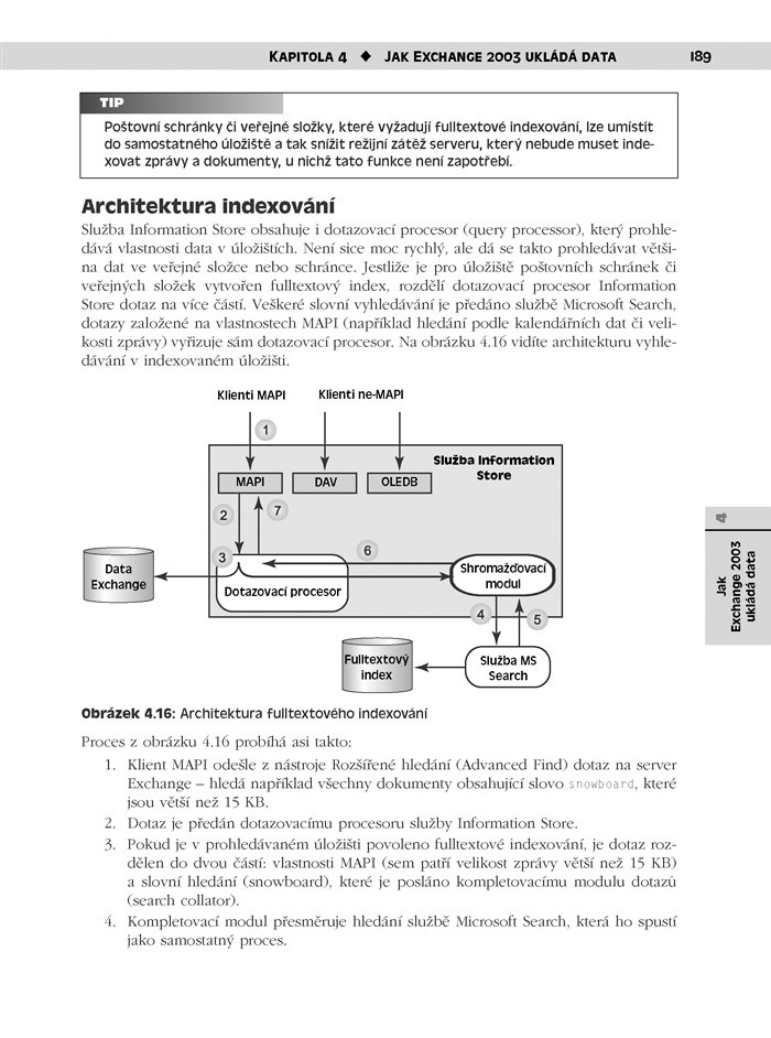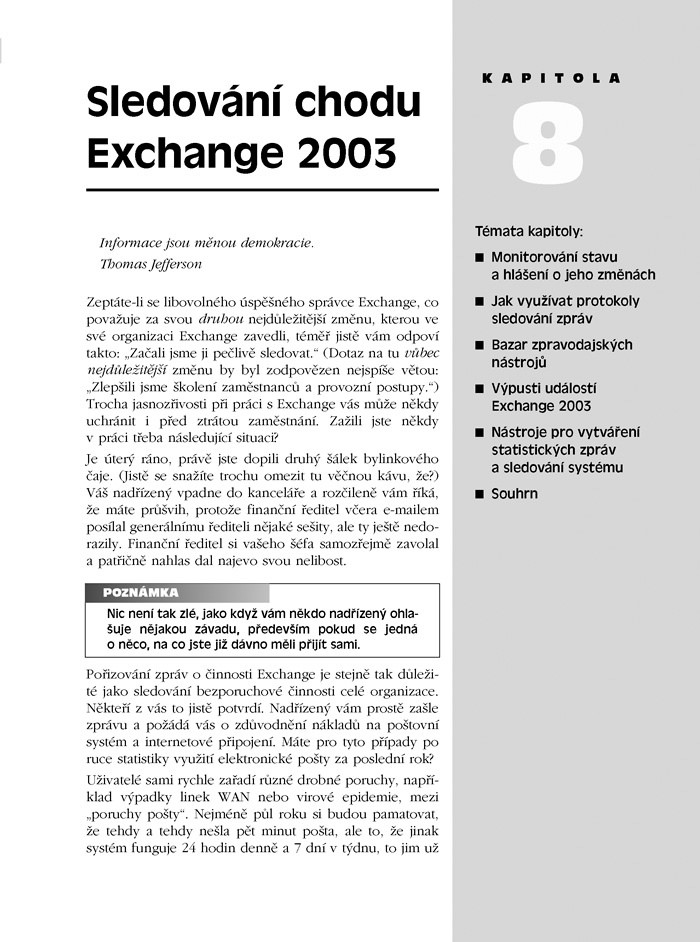 Autoři čerpají ze svých obdivuhodně bohatých zkušeností z řady organizací, aby vám ukázali, jak zařídit, aby věci opravdu fungovaly – v různých podmínkách a při různých požadavcích. Obsahuje hloubkové informace, z nichž mnohé nelze získat jinak než dlouhodobou praxí s různými implementacemi poštovních serverů. Konkrétní instrukce, odborné rady a osvědčené postupy ve 23 tematických kapitolách obsáhnou veškerou problematiku, která se Exchange může týkat. Dozvíte se a poznáte například: