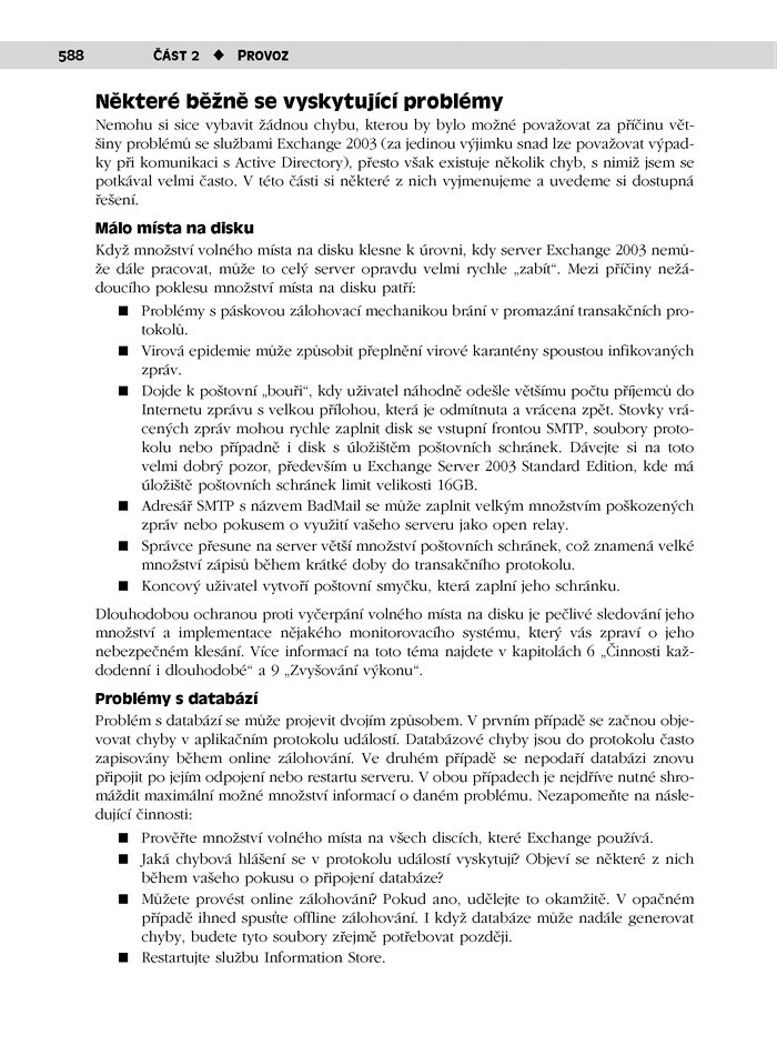 Dosud nejhodnotnější publikace k Exchange Serveru začíná tam, kde ostatní knihy obvykle končí. Nepředkládá vám základní postupy za ideálních podmínek, naopak zachycuje Exchange v ostrém provozu a v interakci se svým prostředím: s hardwarem počítače, operačním systémem, Active Directory, síťovou infrastrukturou, potřebami organizace, chováním uživatelů, nekalými záměry záškodníků i ne vždy dokonalým správcem. Pomůže vám maximalizovat výkon, spolehlivost, dostupnost a zabezpečení vašeho serveru (nebo serverů), předejít malým tragédiím a v neposední řadě šetřit váš drahocenný čas.
