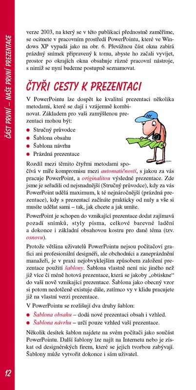 Tuto knihu uvítá každý, kdo chce nebo potřebuje vytvářet zajímavé prezentace, úspěšně je předvádět před publikem, ale s PowerPointem nikdy nepracoval a nemá příliš času na učení ani na vlastní tvorbu. Jakmile si procvičíte základní činnosti, nemělo by vám vytváření vlastní prezentace trvat déle než pár desítek minut.