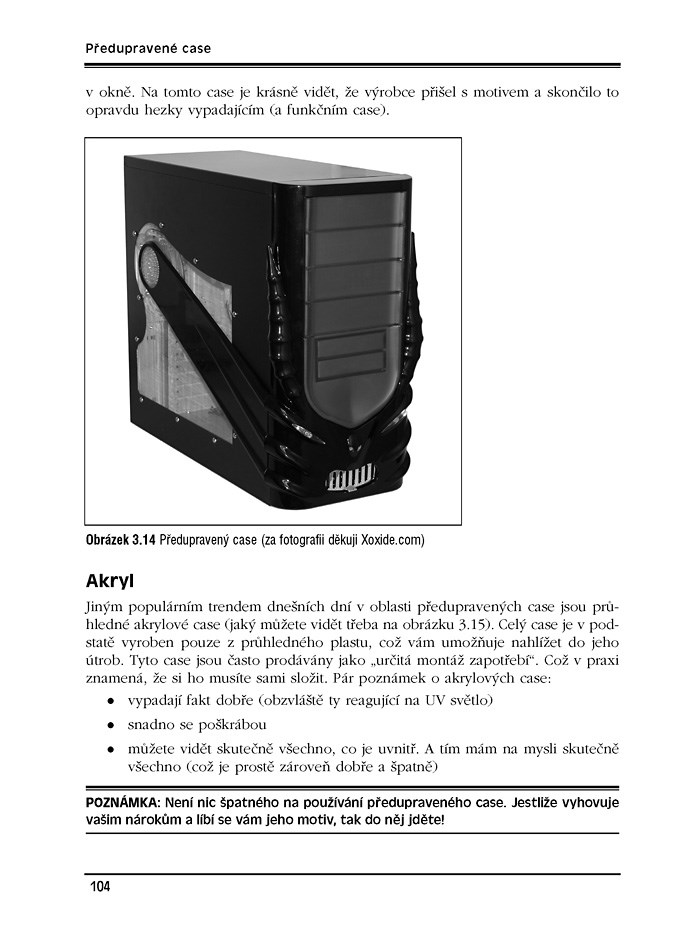 Tato unikátní kniha vám předvede spoustu zajímavých nápadů a poskytne dostatek informací, abyste si je mohli sami vyzkoušet. Ukáže vám, jaké nástroje vzít do ruky, jak například uspořádat kabely i co si můžete a nemůžete dovolit k jednotlivým součástem počítače, abyste neublížili jemu ani sobě. Snadno se tak naučíte, jak přetvořit váš počítač dle osobního vkusu k nepoznání!