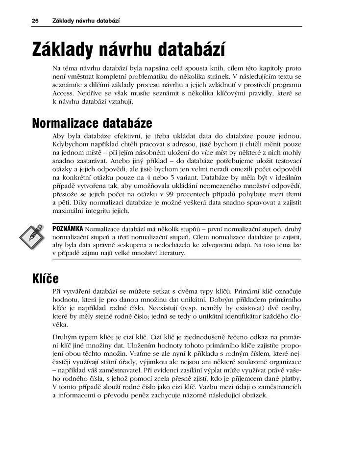 Výklad je opatřen velkým množstvím obrázků, jež popisují veškeré nutné kroky ke zvládnutí pokročilých technik vytváření databází a programování databázových aplikací. Informace jsou doplněny tipy, triky a průvodcem vlastnostmi aplikace Access.