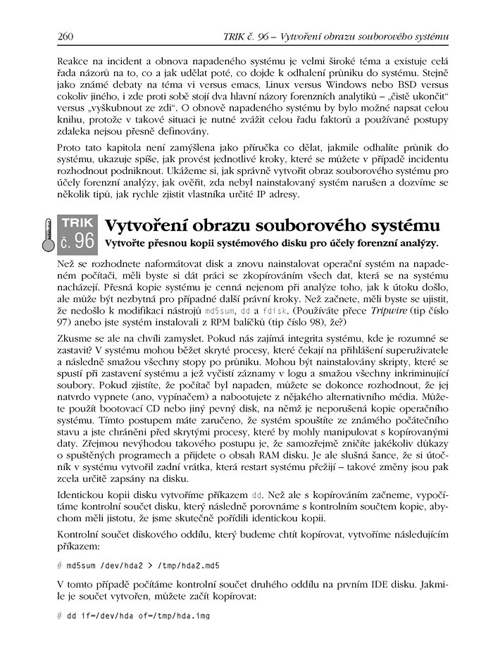 Kniha z populární edice „Hacks“ od nakladatelství O'Reilly přináší stovku cenných bezpečnostních technik pro okamžité zvýšení bezpečnosti vašeho serveru i sítě. Neobsahuje statě o teorii zabezpečení ani odhalení hackerských technik. Předvádí účinné způsoby ochrany serverů a sítí před různými zákeřnými i nenápadnými útoky. Najdete v ní příklady, jak detekovat útok (a zaznamenat jej až na úroveň jednotlivých stisknutých kláves), jak chránit data a sítě pomocí silného šifrování i jak vytvářet pasti na potenciální útočníky.