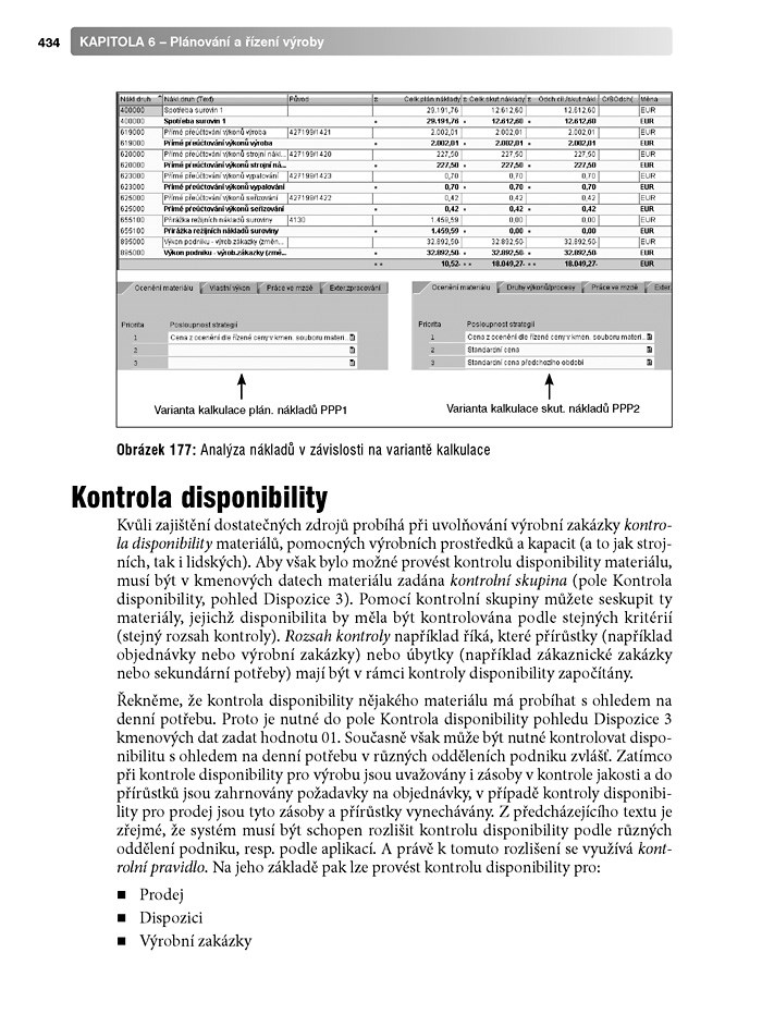 - Plánování nákladů na výrobek, kontrola disponibility