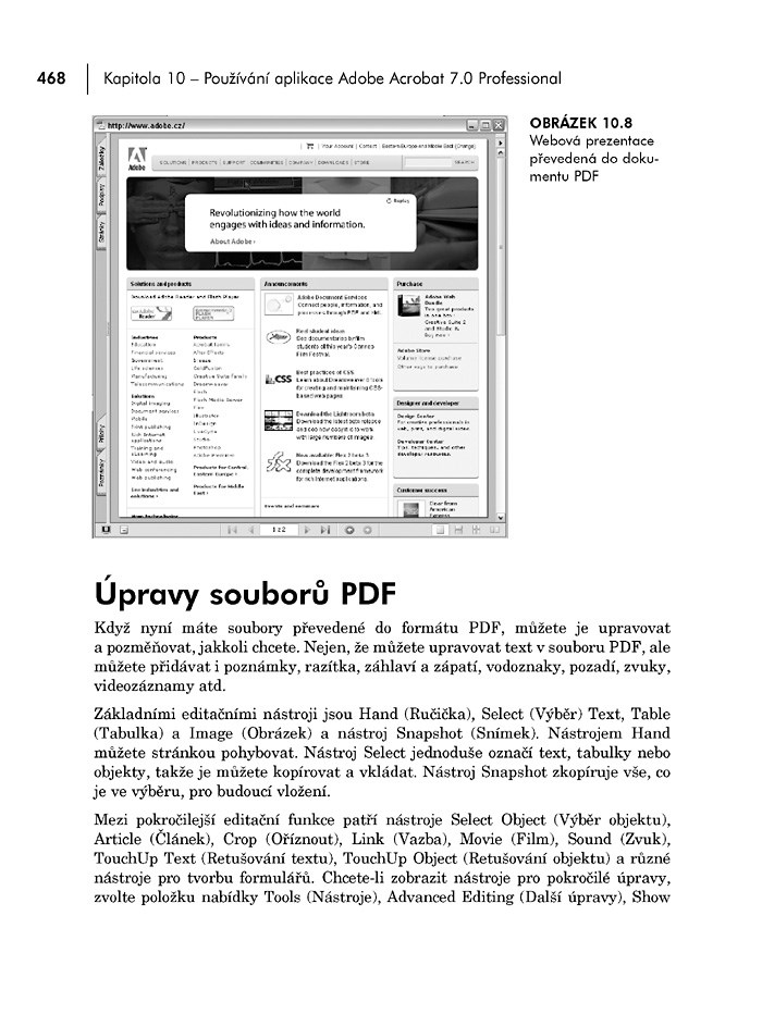 Grafické a publikační nástroje firmy Adobe disponují nejen stále novějšími nebo efektivnějšími funkcemi, ale jsou spolu také mnohem těsněji provázány, čímž uživatelům do značné míry usnadňují práci. Pro běžnou praxi, pokud nepotřebujete ovládat programy do nejposlednějšího detailu, se vyplatí mít příručku, která pokrývá nejen základní funkce aplikací z balíku Adobe Creative Suite 2 (Photoshop, ImageReady, Illustrator, InDesign, GoLive, Acrobat 7.0 Professional, Version Cue 2), ale ukáže vám, jak využít provázanosti programů a zvládnout úkoly, na kterých většinou budete muset pracovat.