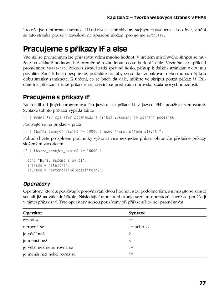 Zkušení autoři vás v knize důkladně seznámí se základními i pokročilými technikami programování v PHP5, ale zároveň nabídnou i ochutnávku toho, co vše lze pomocí technologií PHP, MySQL a Apache ve webovém prostředí dokázat. Projdou s vámi tak nejen naprosté základy problematiky, ale zmíní i pomyslnou špičku ledovce. Budete znát dost na to, abyste byli schopni sami zmíněné technologie každý den využívat.