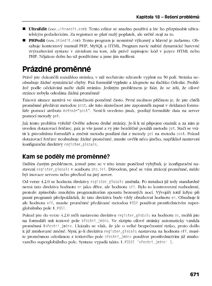 - Předávání proměnných mezi stránkami, načítání kódu z externích souborů, tvorba dynamických stránek