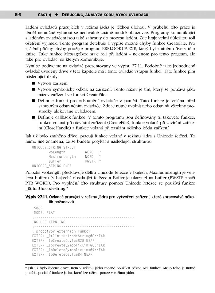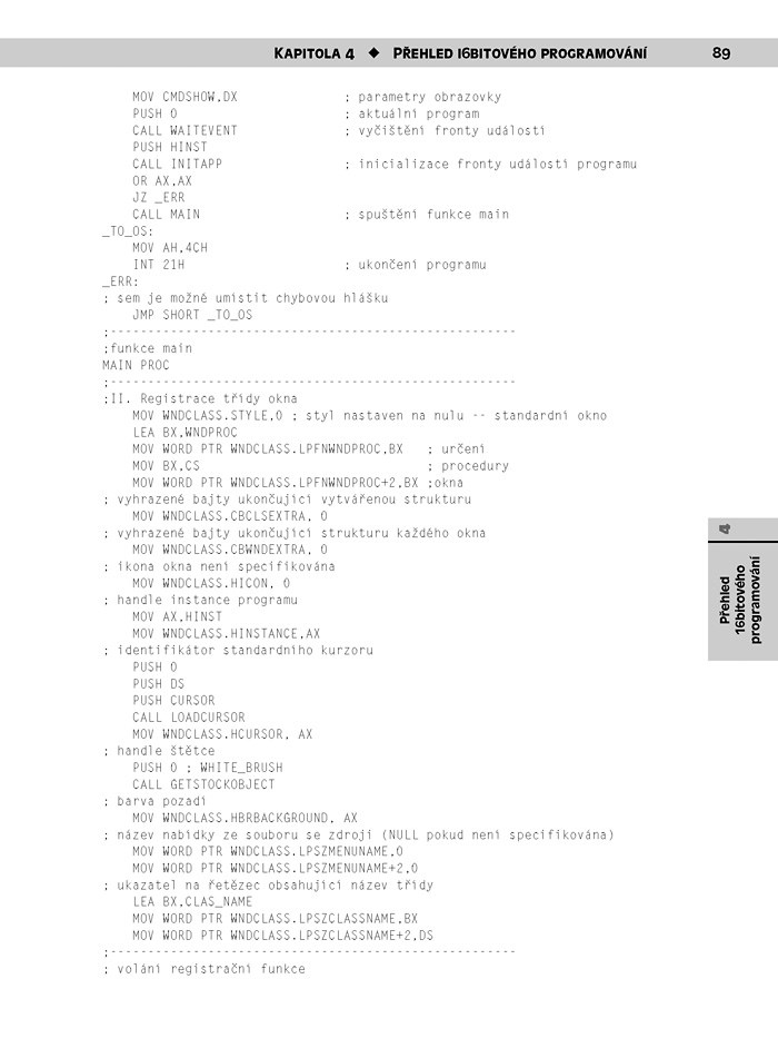 Výklad knihy zohledňuje i nové vlastnosti a funkce operačních systémů Windows 2000, XP nebo Server 2003. Zdrojový kód ukázkových příkladů i celých aplikací byl testován v operačních systémech rodiny Windows NT při použití počítačů s procesory Pentium III a Pentium 4. Použity byly hned dva kompilátory: Microsoft Assembler a Turbo Assembler.