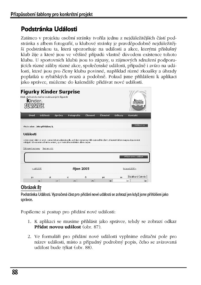 - vytvoření a úprava projektů osobních a klubových stránek,