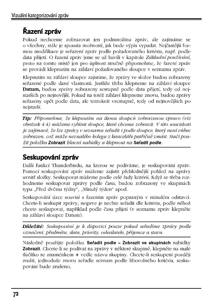 - Nastavení třídicích filtrů, vizualizace zpráv a správa koše