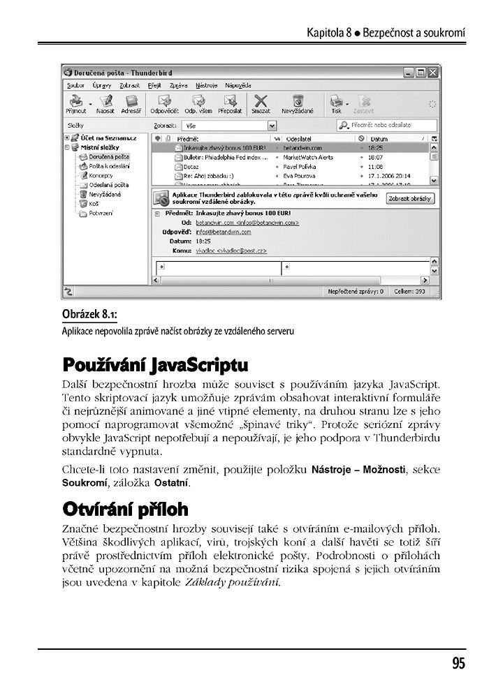 - Blokování nevyžádané pošty a automatického otevírání příloh, správa hesel a další zabezpečení