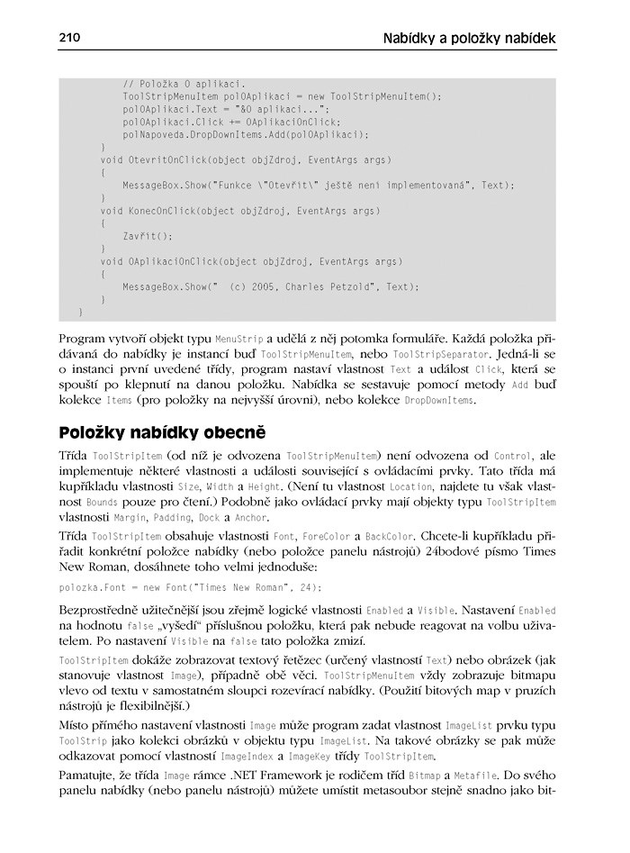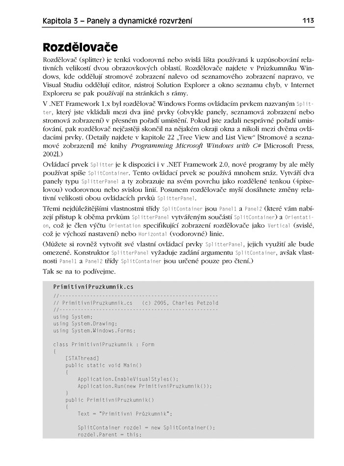 Výklad v knize využívá novinek .NET Framework 2.0 a Visual Studia 2005. Na přiloženém CD naleznete instalaci Microsoft Visual C# 2005 Express Edition, .NET Framework 2.0 a kompletně lokalizované kódy.