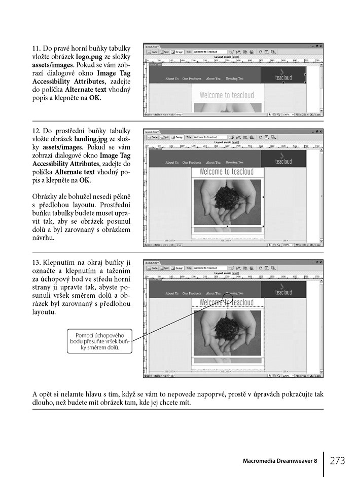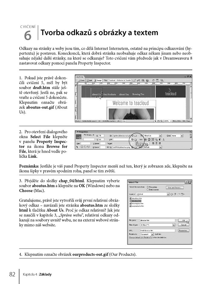 Kniha je založena na praktických příkladech doprovázených nezbytným minimem teorie a osvědčenými tipy. Naučíte se vytvořit strukturu webu, navrhnout layout stránek pomocí CSS, používat tabulky, pracovat se šablonami a formuláři. Opomenuta není ani práce s novými funkcemi. Pokud se učíte rádi přímo na příkladech, které nejsou vyumělkované, oceníte svěží přístup této knihy na více než 90 tutoriálech.