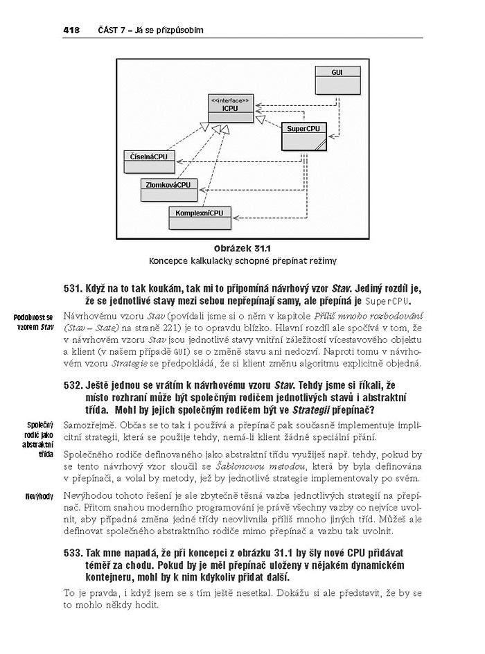 Tato čtivá kniha vás nejen uvede do problematiky, ale především vám otevře dveře ke zvýšení efektivity vaší práce, neboť vám popíše hned 33 klíčových vzorů pro nejčastější programátorské použití. Výklad je rozdělen na malá, snadno stravitelná sousta umožňující výrazně lepší pochopení probírané látky. Celý text je navíc prostoupen praktickými příklady, na nichž si veškeré popisované vzory vyzkoušíte v reálných programech.