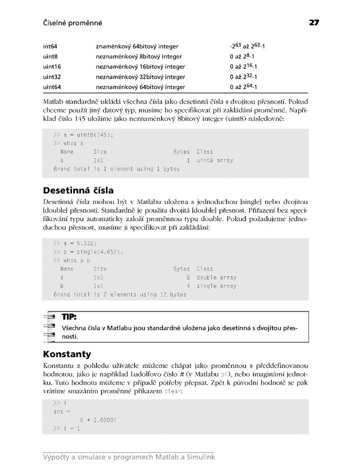 - Poslední část se věnuje rozšiřujícímu modulu – Simulinku a obsahuje stručný úvod do teorie řízení, popis základních bloků, ilustrativní příklady a několik řešených složitějších úloh.