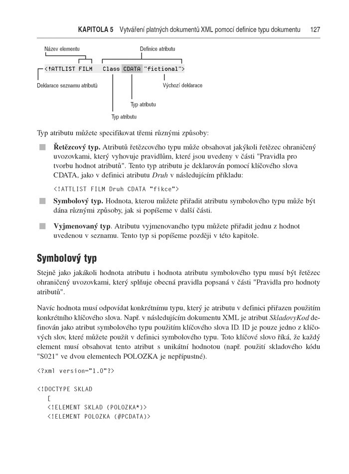 - Práce se schématy XML, deklarace typu dokumentu, elementů, atributů a entit
