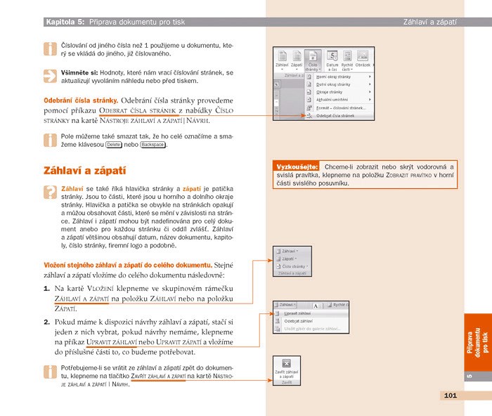 - Úprava pozadí stránky, záhlaví a zápatí a číslování stránek