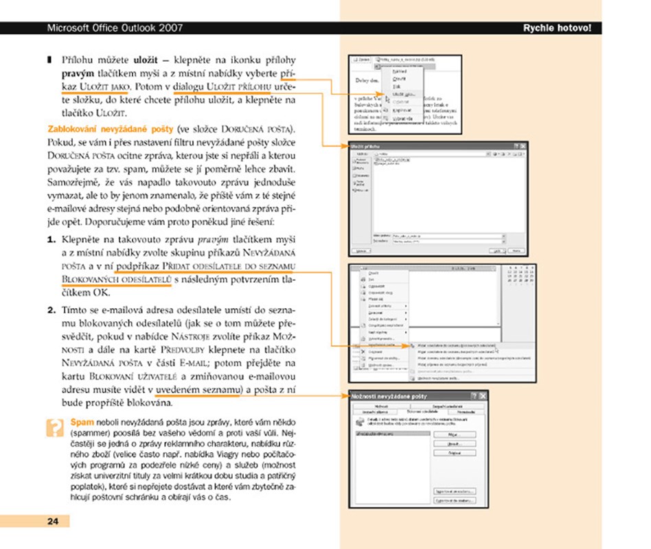 Tento moderní průvodce na rozdíl od jiných knih Microsoft Office Outlook nepopisuje, ale všechny běžné činnosti vám v nich ukáže: