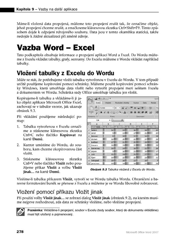 - Spolupráce mezi Wordem a Excelem či Powerpointem