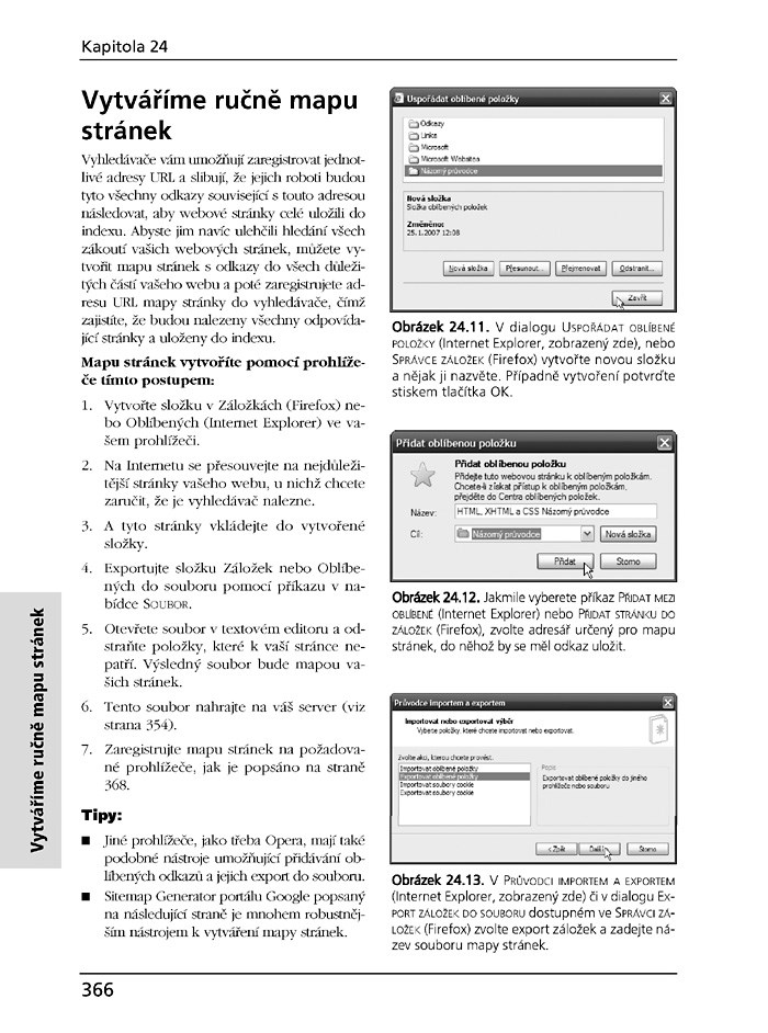 Tato kniha z edice Názorný průvodce vyniká především přehlednou dvousloupcovou sazbou a výkladem krok za krokem. Postupy doplňují vysvětlení a další tipy, pomocí nichž tvorbu kódu zefektivníte. Zkušená autorka do knihy shrnula všechny možné postupy a činnosti, pomocí nichž budete schopni vytvořit kvalitní, moderní webové stránky se vším všudy. Výklad zahrnuje prohlížeč Internet Explorer 7.