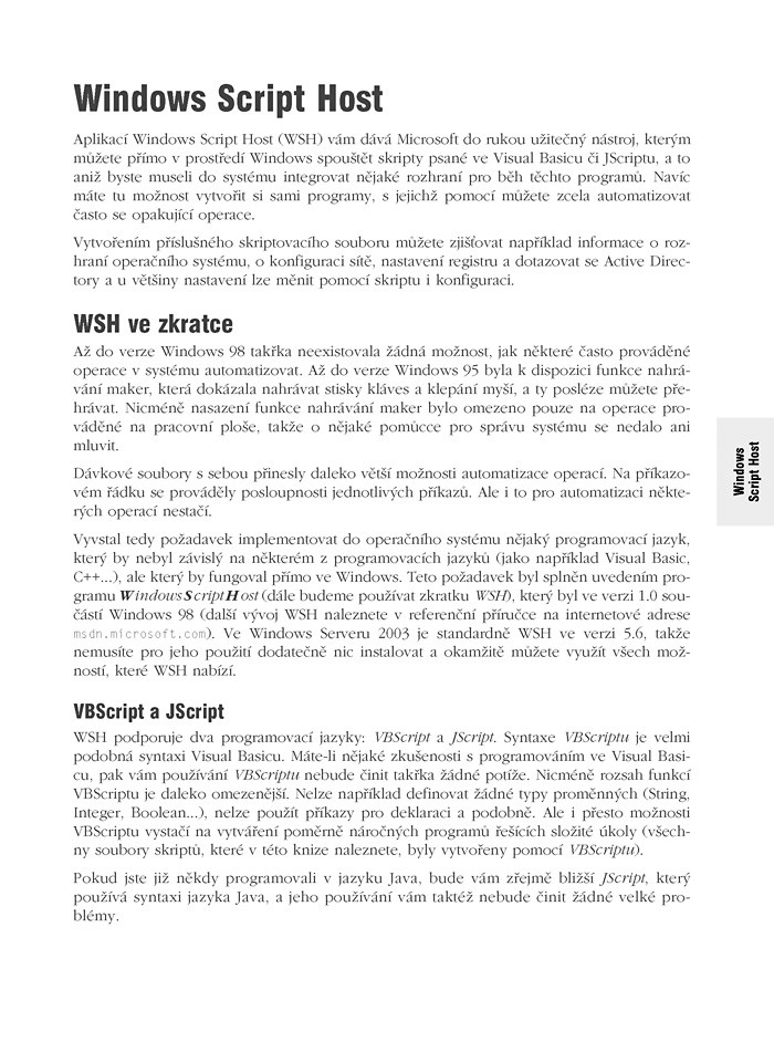 Knihu vhodně doplňuje referenční příručka regulárních výrazů a vlastností tříd VBScriptu. Výklad v knize zároveň počítá nejen s českou, ale i s anglickou verzí Windows Serveru 2003, neboť všechny prvky uživatelského rozhraní uvádí pro obě verze.