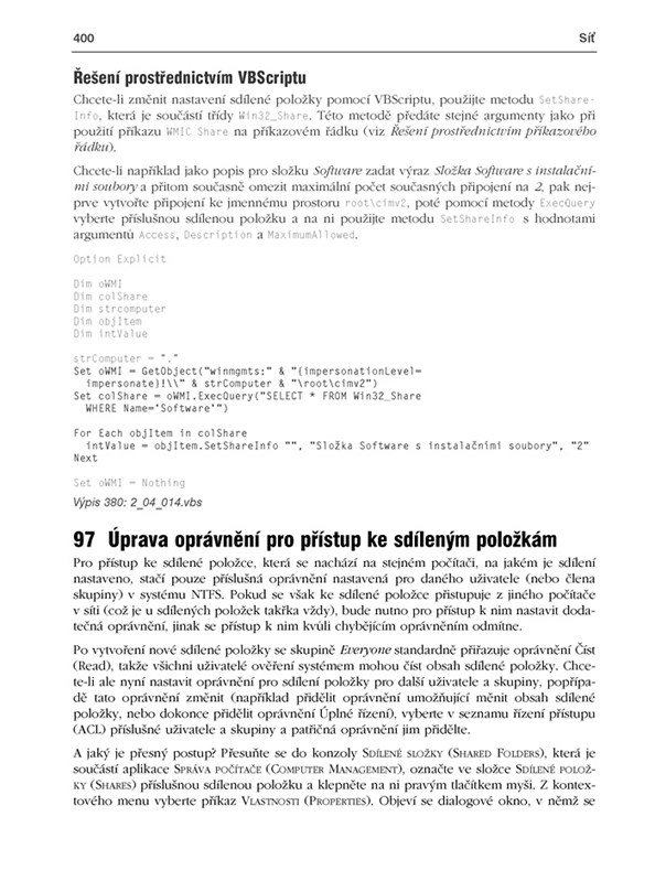 Tato příručka je sbírkou osvědčených řešení nejčastějších administrátorských úkonů, s nimiž se každodenně potýká nejeden správce. Zkušená autorka v knize popisuje provedení úkolů nejen v grafickém rozhraní systému, ale hlavně mnohem efektivnější řešení pomocí skriptování v příkazovém řádku a pomocí VBScriptu. Snadno si tak vytvoříte šablony skriptů, díky nimž své úkoly zvládnete rychleji a snadněji.