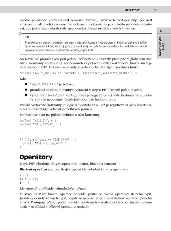 Tato publikace je dotiskem úspěšného bestselleru. V této knize vám tři význační tvůrci samotného PHP ukáží, jak vytěžit maximum z jeho tradičních schopností i posledních zdokonalení, a to v jakémkoli projektu bez ohledu na jeho rozsah či složitost. Po shrnutí základů PHP, principů tvorby webové aplikace a novinek PHP 5 už dají zasvěcenými náhledy do tajů jazyka a jeho stroje vyniknout technikám objektového programování, napojení na databáze a dokumenty XML, návrhovým vzorům, s nimiž ušetříte mnoho námahy, ale i skriptování z příkazové řádky a dalším možnostem. Oprávněnou pozornost věnují dosud opomíjeným technikám využívání už hotového kódu a softwarových řešení dalších programátorů – zejména repositáři PEAR, před odhalením jehož netušeného bohatství většina programátorů teprve stojí.