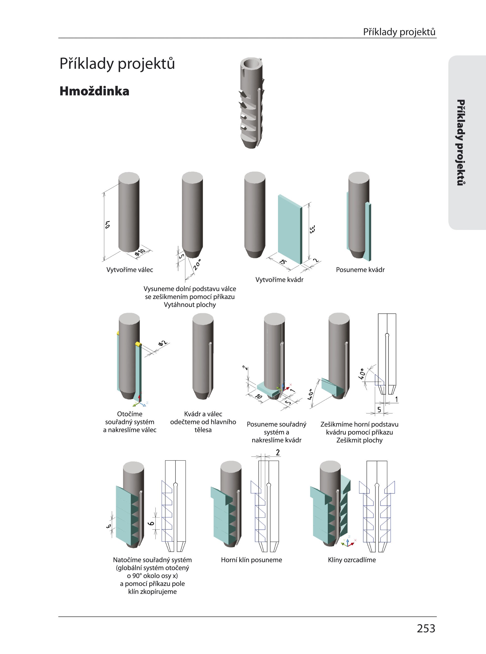 - Modelovat kvádr, válec, klín, šroubovici či anuloid