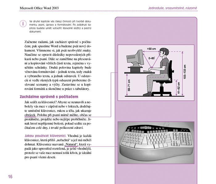 - 3. Moderní metodický přístup. Ovládání počítače již není otázkou vědomostí, ale cviku. Všechna témata jsou v knize probírána tak, aby čtenář mohl procvičovat a opakovat každou činnost tak dlouho, až získá nejen potřebné dovednosti a návyky, ale také dostatečnou sebejistotu.