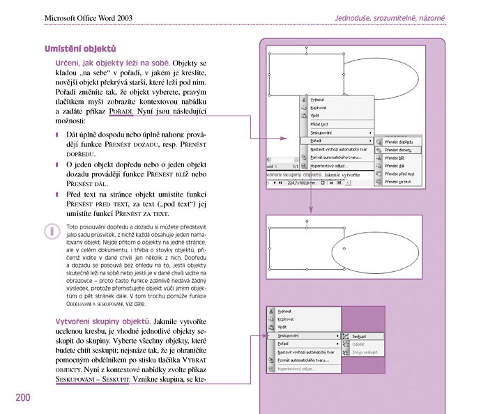 - 4. Všechna důležitá témata. V této příručce se naučíte vše podstatné, co budete k ovládání a efektivnímu využití Wordu 2003 potřebovat: vytvořit dokument, opravovat chyby a překlepy, připravit a provést tisk, upravovat text, přesouvat, kopírovat, formátovat i mazat části textu, vkládat tabulky i obrázky, používat šablony a funkce pro kontrolu pravopisu.