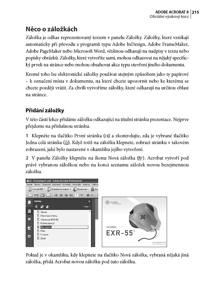 Oficiální výukový kurz je příručkou od samotných tvůrců tohoto programu. V 19 lekcích se sami krok za krokem naučíte vše od ovládání a základů práce v Acrobatu 8 přes úpravu a recenzování až po vkládání multimédií a interaktivních prvků do dokumentů PDF a praktické využití nových funkcí. V jednotlivých lekcích budete vytvářet skutečné projekty, díky nimž své vědomosti a znalosti postupně zdokonalíte. Autoři se v knize mimo jiné věnují těmto tématům: