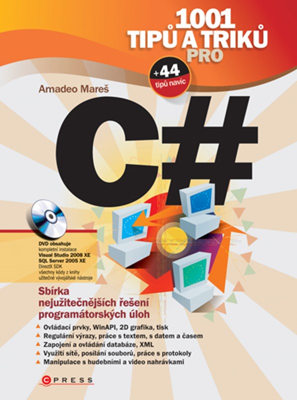 DVD obsahuje kompletní instalace produktů Microsoft Visual Studio 2008 Express Edition, Microsoft SQL Server 2005 Express Edition, Microsoft DirectX SDK a dekompilační program .NET Reflector. Dále na něm najdete i zdrojové kódy tipů a triků z knihy, takže kódy budete moci ihned použít.