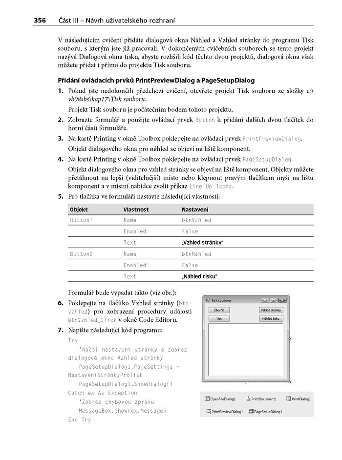 - Dokonale využívat PrintDocument a pracovat s tiskem