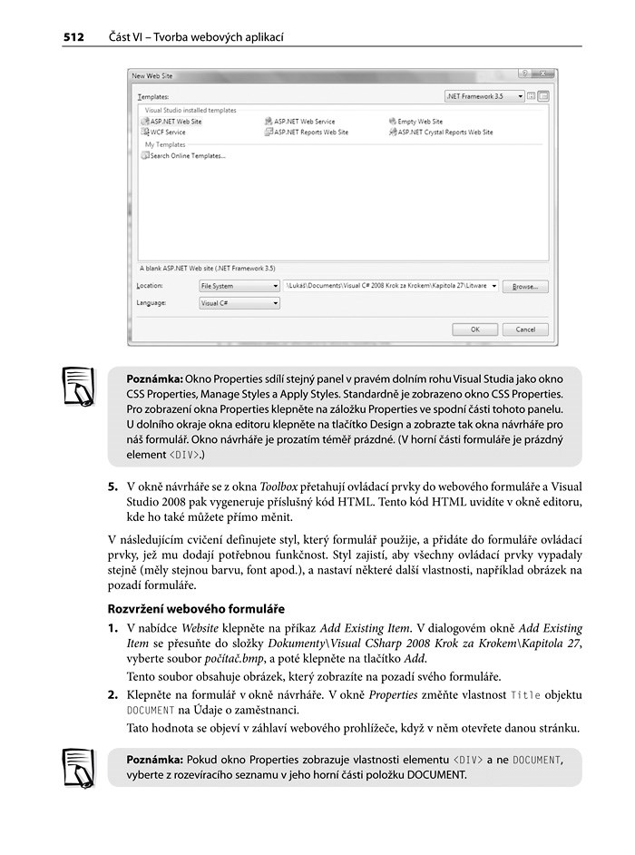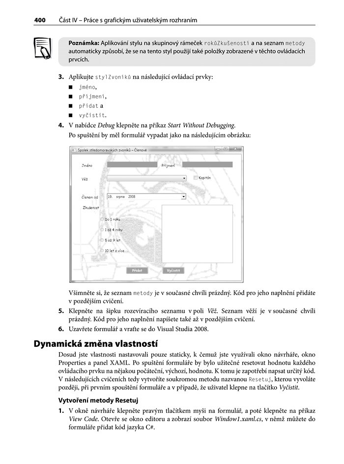 Kniha je přímým následovníkem oblíbené příručky pro výuku Visual C# 2005. Postup krok za krokem zajistí, že nevynecháte jediný důležitý detail a vše zvládnete naprogramovat hned napoprvé. K většině cvičení je navíc k dispozici startovní i hotový zdrojový kód, takže si vše můžete ihned zkoušet v praxi.