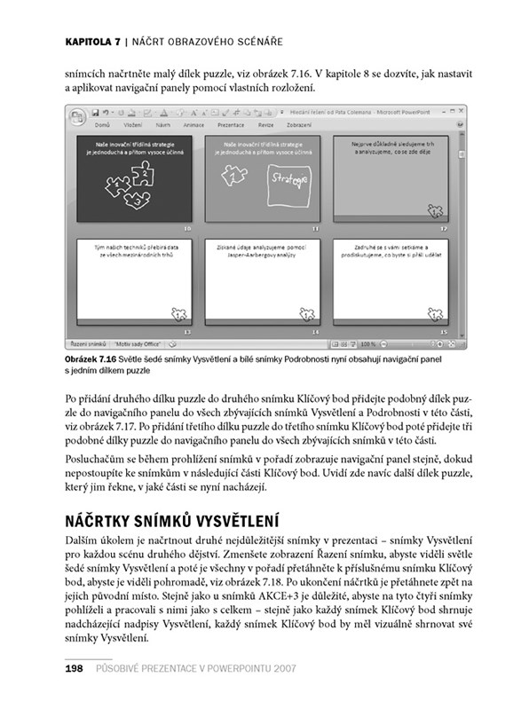Na konci knihy naleznete několik ukázkových příkladů působivých prezentací pro různá prostředí a přehledné kontrolní seznamy pro každou prezentaci.