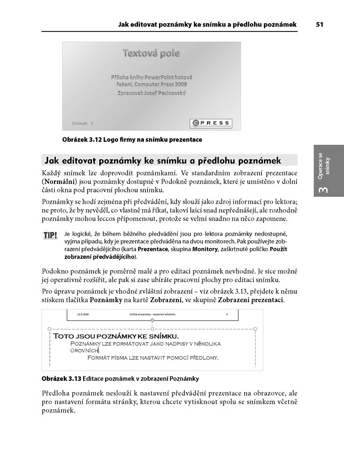 Pravou zásobnicí takových pokročilých postupů je tato kniha. Všechna řešení vycházejí z letité praxe, jsou strukturována přehledně krok za krokem, názorné obrázky čtenáři dopomohou k jejich snadnému a rychlému využití. Kromě toho je doprovází řada tipů a upozornění na možná úskalí. Bez zbytečné teorie a námahy tak povýšíte své prezentace nad průměr.