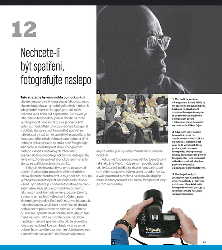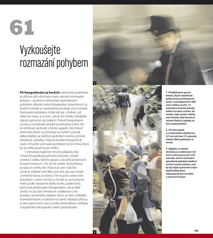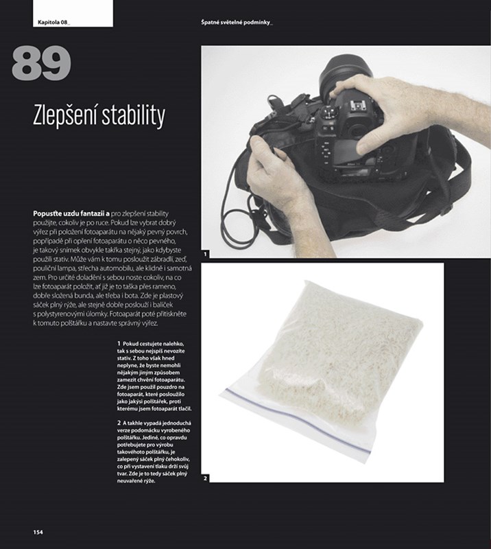 To vše v této knize naleznete, v jednoduché a čtivé formě očíslovaných tipů, praktických rad a triků. Autor si nenechá žádné tajemství pro sebe, ať už se jedná o specifický postup práce, způsob přemýšlení nad kompozicí snímku nebo o výtečný nápad s prostým pytlíkem rýže. Tak je vyzkoušejte!