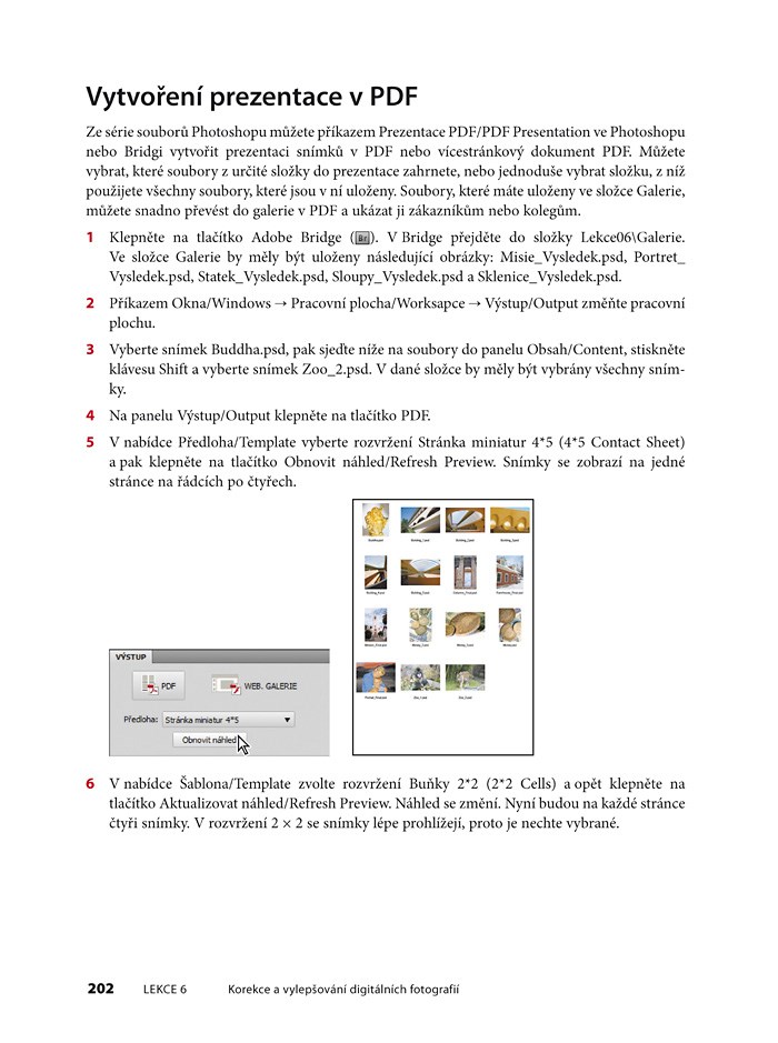 Oficiální výukové kurzy vytvořené odborníky ze společnosti Adobe jsou světově nejvyhledávanějšími učebnicemi pro výuku tohoto softwaru. Pomohou vám poznat programy Adobe v akci a ovládnout je bez zbytečného tápání. Své dovednosti s nimi zdokonalujete krok po kroku, v postupech řešících vždy jasně danou činnost, efekt či problém a na profesionálních grafických materiálech, jež budou jedinečnou inspirací pro vaši práci. Kniha obsahuje jak české, tak anglické prvky uživatelského rozhraní Photoshopu.