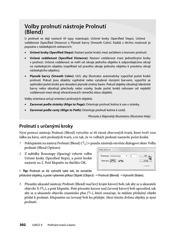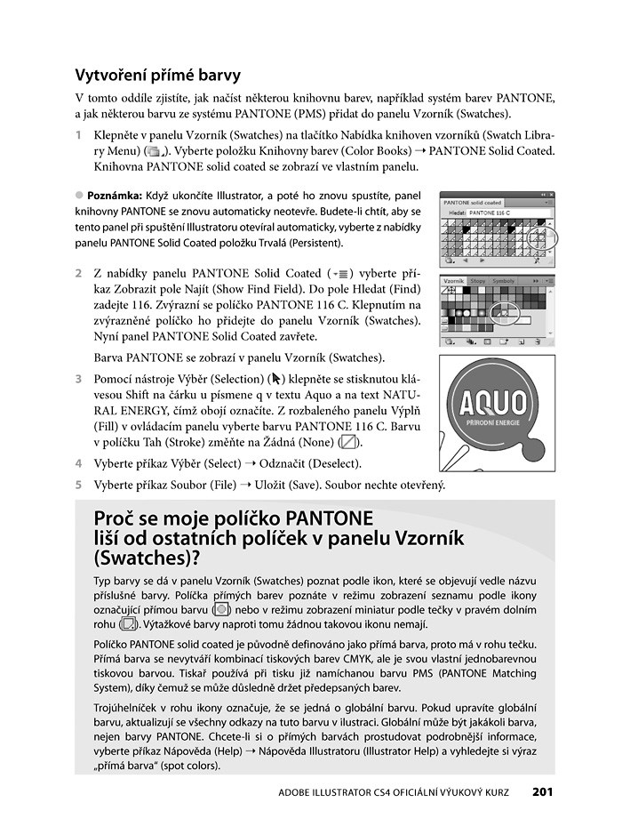 Kniha obsahuje jak české, tak anglické prvky uživatelského rozhraní Illustratoru.