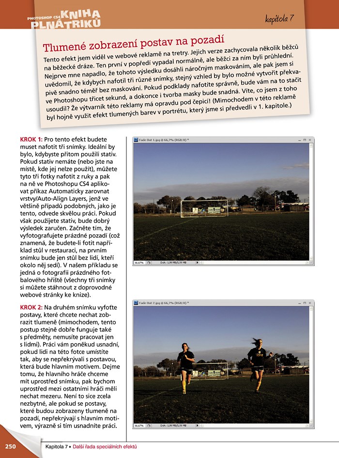 Publikace vás seznámí s technikami a triky, díky nimž dosáhnete neuvěřitelných efektů. Problémem pro vás nebudou efektní koláže, textové transformace, barevné kompozice ani trojrozměrné obrazy. Dozvíte se mnoho užitečných tipů z praxe, s nimiž bude vaše práce s Photoshopem rychlejší, přesnější a zábavnější.