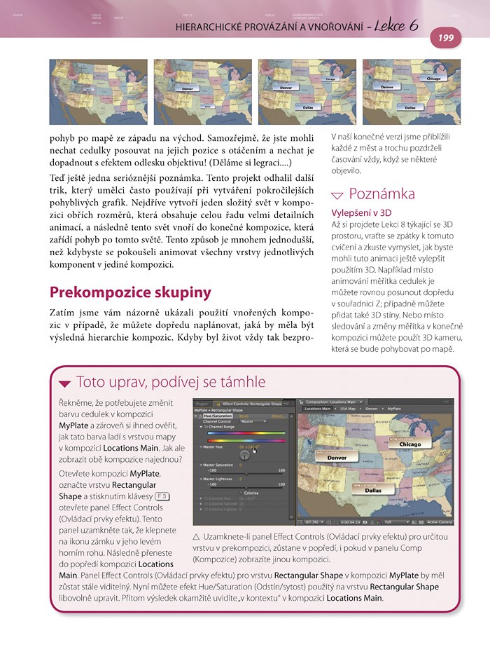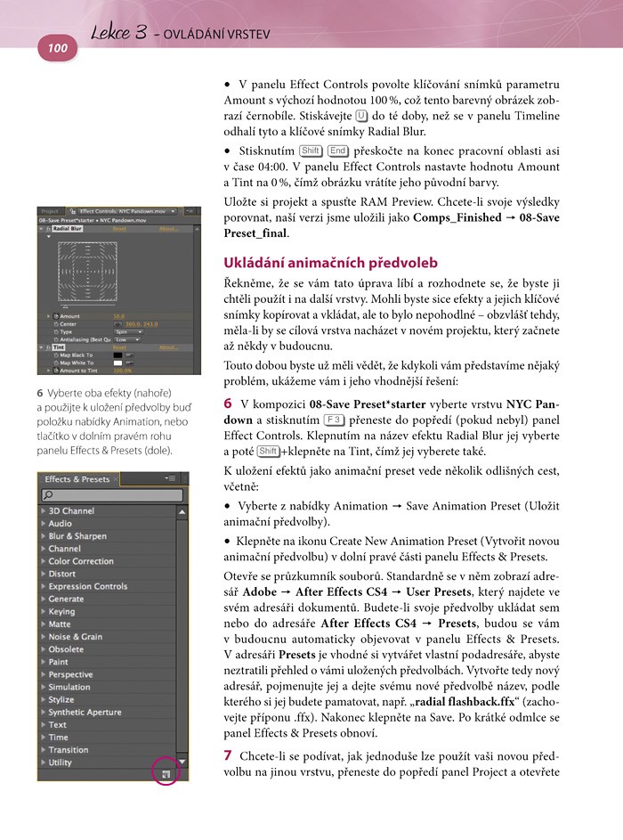 Zkušení autoři vám srozumitelnou formou představí všechny nezbytné nástroje společně s možnostmi jejich využití. Každá z 11 lekcí obsahuje řadu názorných příkladů a text průběžně doplňují užitečné tipy, které usnadní začátky práce s programem začátečníkům i pokročilým. Zdrojové materiály vám umožní společně s autory pracovat na skutečných projektech a snadno si pak osvojíte všechny dovednosti od vytváření animací a používání efektů přes vkládání textu až po úpravy tvarů v 3D prostoru. V poslední 12. lekci si pak při shrnutí práce na konkrétní „zakázce“ můžete vyzkoušet, co všechno jste se naučili. V knize se mimo jiné dočtete jak: