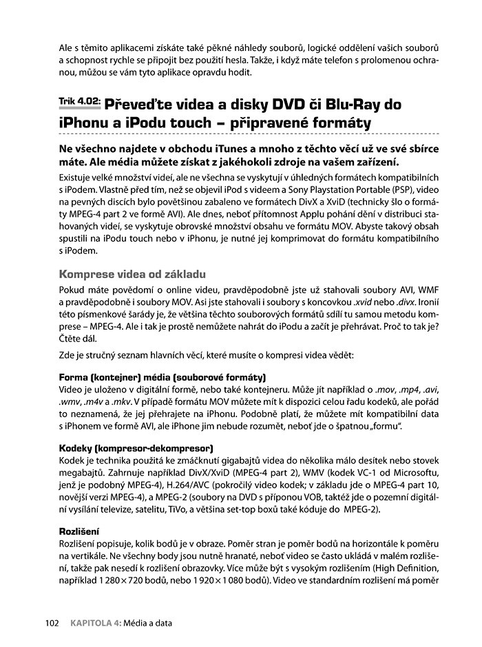 Nevěříte, že tohle všechno je vůbec s iPhonem či iPodem touch možné? Skupina expertů vás přesvědčí, že tohle je pouhý střípek toho, co počítač ukrytý v elegantním obalu dokáže, pokud víte, jak na to. Z více než stovky pokročilých postupů přehledně uspořádaných do tematických kapitol a rozlišených podle náročnosti si každý vybere. Nechybí množství tipů na stále aktualizované aplikace, hackerské blogy a fóra ani řešení problémů a upozornění na možná úskalí zásahů do přístroje.